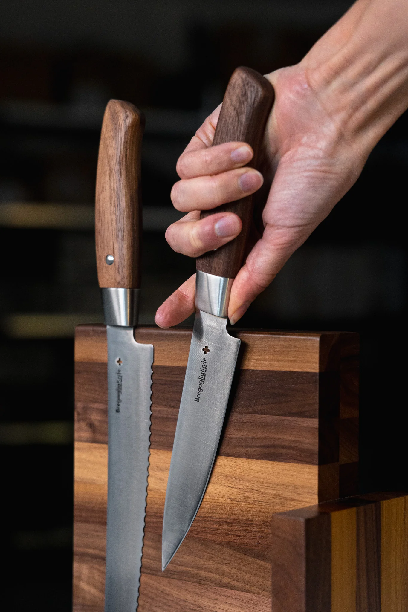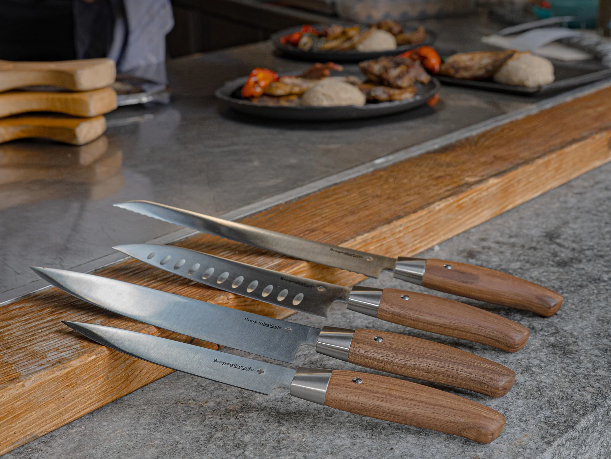Seit dem ersten Tag verfolgt BregagliaKnife das Ziel, Messer vollständig in der Schweiz herzustellen. Die Kombination aus geerbtem Know-how, schweizerischer Präzision und kontinuierlicher Innovationsfreude macht die Messer des Unternehmens einzigartig. Neben Küchenmessern hat BregagliaKnife sein Sortiment inzwischen um hochwertige Outdoor-Messer erweitert, darunter Klappmesser und feststehende Klingen.
